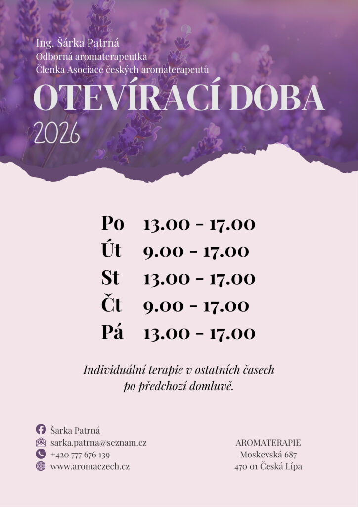 Jsem odborný aromaterapeut a členka Asociace českých aromaterapeutů s mezinárodní akreditací IFPA. Kromě individuálních terapií nabízím odborné semináře, workshopy a přednášky. V centru České Lípy mám terapeutickou místnost a kamenný obchod se zbožím zaměřeným na přírodní péči o tělo, doplňky stravy a eko drogerii.